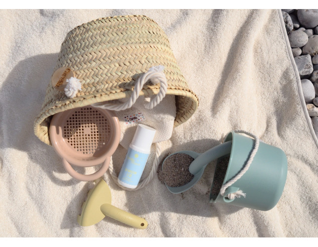 Capazo tradicional de fibra de palma natural, tejido a mano, con asas de algodón trenzado y charm de madera de boj.