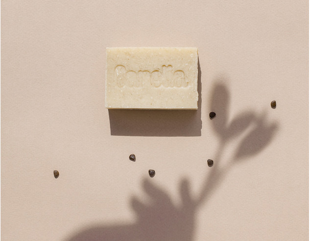 Savon délicieusement onctueux, hydratant et régénérant, fabriqué de manière traditionnelle à partir d'une base d'huiles végétales 100 % pures (huile d'olive + huile de coco) pressées à froid, et de beurre de cacao biologique.